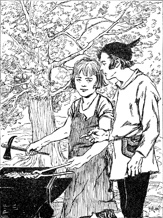 “How goes the work, lads?” she asked, and then caught Alan by the shoulder, crying, “No need to answer. I know by the face on thee. What hast been doing to make it shine so?”