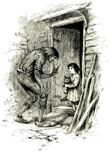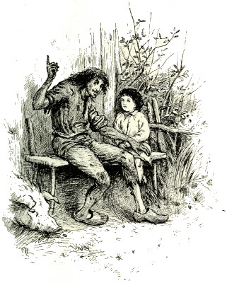 'Eh! but what is this?' he cried, in his high cracked voice as he flung down the sacks, and stood by the little lad in the doorway. 'Remember my ears are so quick I can hear the grass grow. Just now I heard the best mother in the world call her little boy to go indoors, and here he stands still on the threshold. If you do not go in do you know what will happen, eh?'