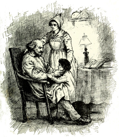 She put the candle back again, and coming round[Pg 162] the foot of the bed, stood by Master Lepage, with her hand resting on his shoulder.