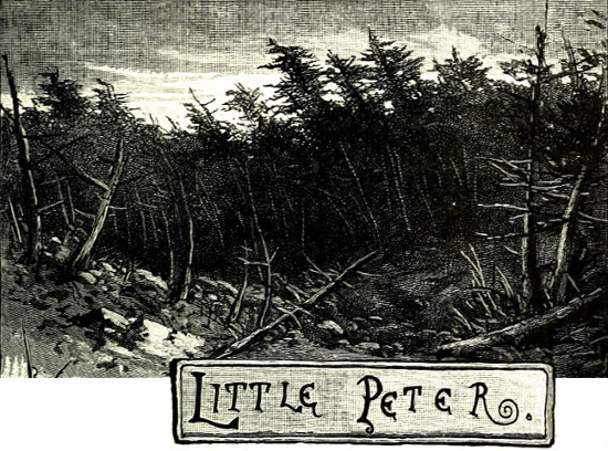 Once upon a time, just on the edge of the pine forest, there lived a little boy. He lived in a big, brown, wooden house, with overhanging eaves and a very deep roof to it, which swept down from the high middle gable like the wings of a hen covering her chickens. The wood-sheds, and hay-barn, and the stable where the brown-eyed, sweet-breathed cows lay at night, and the clean, cool dairy, and the cheese-room with its heavy presses were all under this same wide sheltering roof. Before the house a meadow of rich grass stretched down to a stream,[Pg 7] that hurried along over rocky limestone ledges, or slipped away over flat sandy places where you might see the little fishes playing at hide-and-seek or puss in the corner among the bright pebbles at the bottom. While on the shallow, marshy puddles by the stream side, where the forget-me-not and brook-lime and rushes grow, the water-spiders would dance quadrilles and jigs and reels all day long in the sunshine, and the frogs would croak by hundreds in the still spring evenings, when the sunset was red behind the pine-trees to the west. And in this pleasant place little Peter lived, as I say, once upon a time, with his father and mother, and his two brothers, and Eliza the servant-maid, and Gustavus the cowherd.