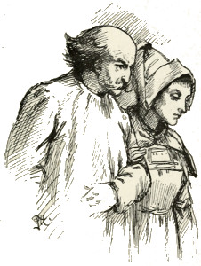 Paqualin knelt on there for some time, looking up as though he expected a direct and visible answer to his singular petition. But nothing happened save that Eliza came upstairs on the tips of her toes—a way of stepping which she intended to[Pg 154] be particularly quiet, but which was, in fact, particularly noisy—and peeped into the room. Seeing the charcoal-burner kneeling by the bed-side, she gave a fearful gasp, and sank down into the nearest chair.