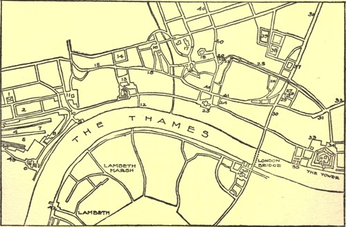 | 3. | St. James’s Palace. | 18. | Smithfield. | 33. | St. Olave. | ||