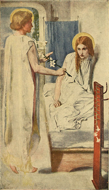 This picture was first exhibited in 1850 at the “Free Exhibition” in Portland Place. It was very slightly retouched in 1873 for the then owner, Mr. Graham. It is rightly considered the most typical of Rossetti’s “Pre-Raphaelite” period.