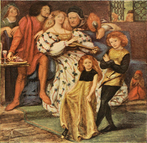 Rossetti first painted this subject in 1851—a smaller size 9½ by 10 in. It is one of the richest of his small compositions.