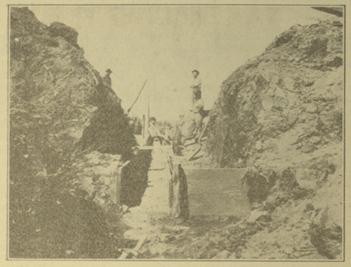 Running midway from west to east through Goudy's allotment is the dry bed of a small creek, which carries water contingent only on the heaviest snows of winter. The Wapato Canal completely blocks this water way, but a gap has been left in the west, or near embankment for the purpose of permitting any possible flow of the creek to enter the canal. This of course allows the canal to empty into the dry bed, filling it to within a few hundred feet of Goudy's west line. This former dry depression, which Goudy always kept free from waste water, is thus converted into a veritable lagoon, unfordable and which in time will develop into a mosquito-breeding, willow-grown swamp.