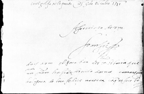 Postscript in D. John of Austria's writing from the collection of the Conde de Valencia de D. Juan.
