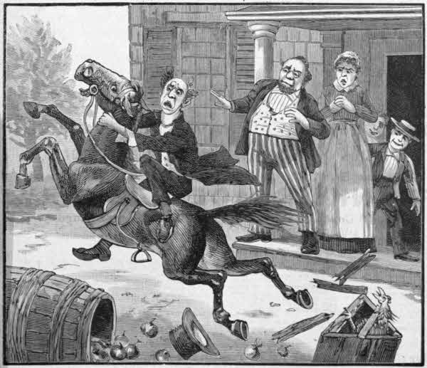 He had never seen his horse show such spirit before, and he did not know what to make of it. Tommy and Jakey were watching the performance with much interest. “Whoa, Tobias, whoa!” the elder kept yelling, while working hard to keep his seat.