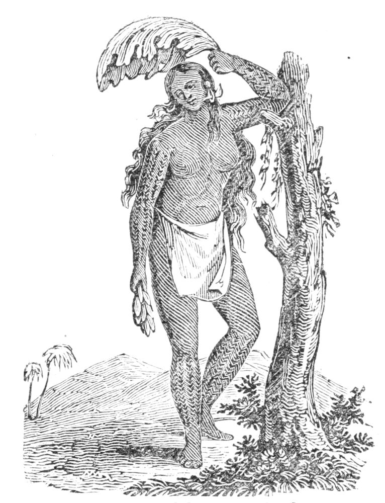 Females, particularly of the higher class, spend a great deal of their time in making ornaments for their persons, such as necklaces, finger rings, coronets and mantles of feathers. In those islands where there are missionaries and other European residents, they are learning to make neat hats and bonnets, and garments of cotton and silk. These native mantua-makers are said to evince great dexterity and skill in their new occupation. But with all these various employments, the Polynesians, either men or women, seldom work more than five hours out of the twenty-four. They sleep and lounge half their time, and frolic away a good portion of the remainder. They are attracted by every new object, and run after it with the eagerness of children. Mrs. Williams, wife of one of the missionaries, says: “The best of native girls will, on a hot day, take themselves off and swim, just when[Pg 294] you may be wishing for some one to relieve you; and after this, they will go to sleep for two or three hours. The moment a boat arrives, away run men, boys, and girls, to the beach. If the mistress censures them, they will laugh at her, and tell her she has ‘too much of the mouth.’”