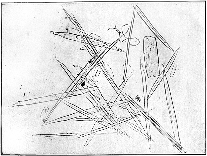 The broken pieces of wood contained in the hurds varied in length from mere particles which were somewhat finer than sawdust to pieces about 3½ inches long, exceptional pieces being found which measured 6 inches in length. The majority of the long pieces were between 2 and 3 inches in length. In thickness the pieces ranged from one-eighth of an inch, in case they were derived from the base of the hemp stalks, to about one sixty-fourth of an inch in those pieces which were derived from the top and branches of the stalks. In cross section the -12- pieces often were found to be a quarter or half of the rounded rectangular woody shell of the stalk, although there appeared to be no regularity in this respect.