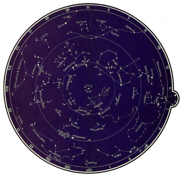 A map of the southern hemisphere is here given for ready reference, but it would be well to possess a good atlas which gives the letters and numbers assigned to all bright stars and shows the positions of the brightest star-clusters and nebulae. Norton’s Star-Atlas and Telescopic Handbook is an excellent one, small enough to be handy, yet complete as far as it goes, and up to date, clear, and convenient to use.[1]