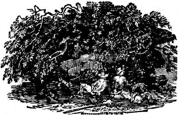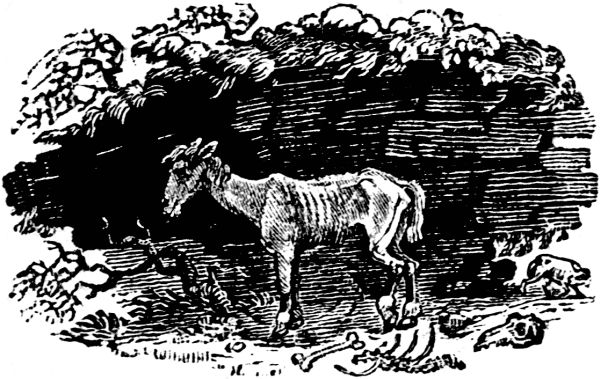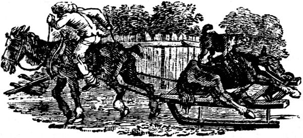 The little matters their father had left them had long been divided among them, and Bounce had made away with his share, as well as with all his pay. In this situation, the brothers gave him a little spot of ground to cultivate, on which he was obliged to employ all his time, in223 order to procure a scanty subsistence. He had now time enough to reflect on the elevated station from which his pride and folly had thrown him.