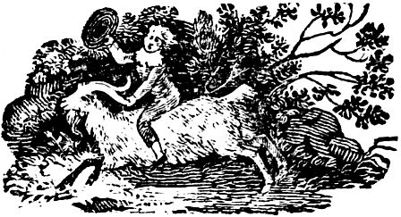 "In order to avoid giving her the trouble of taking notice of me again, I turned into a lane; but hardly had I entered it, when I heard a cry of distress from the same women. I doubted214 not but some misfortune had happened to them, and I, therefore, galloped towards them. As soon as I got to them, the pretty doll cried out, 'Help, help, dear major! my dear sweet Chloe has fallen into the water, and is unable to get out!—The poor dear will be drowned, and I shall die with grief. Save him, major, save him, I beg of you.'