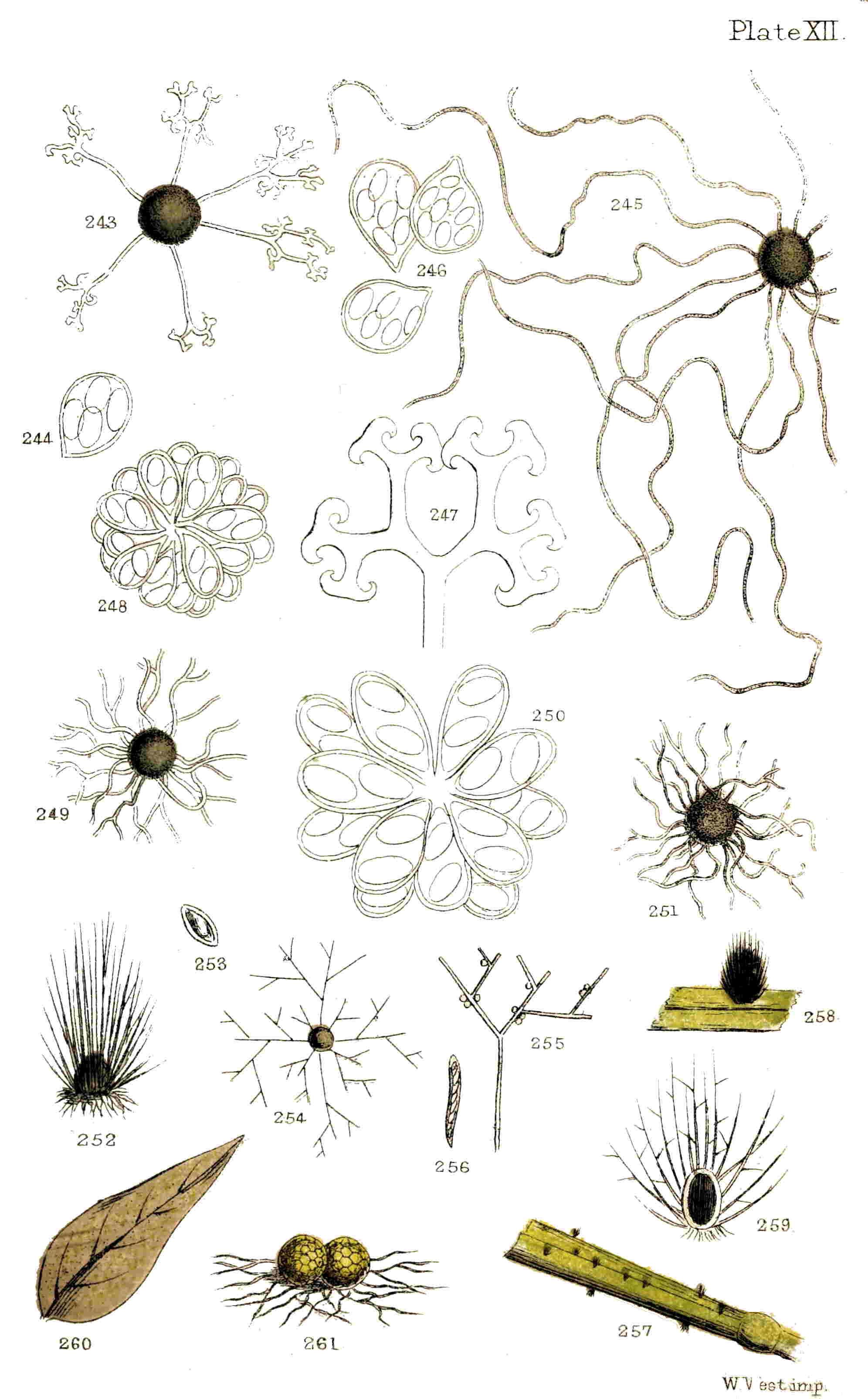 Let not the reader imagine, from what we have just stated, that it is our intention to burden him with a dry series of botanical descriptions; as much of this as we deem essential to render the book available to the botanical student, we have preferred to add in the form of an Appendix. Useful as these may be to some, we hope to be enabled to furnish for others something more; and although we at once disclaim any intention of including all the microscopic, or even the epiphytal fungi, in our observations, yet we trust, by a selection of common and typical species for illustration, and by an adherence to certain well-defined groups and sections, to demonstrate that the microscopist will find an eligible field for his observations in this direction, and the botanical student may gain 3some knowledge of their generic and specific distinctions.