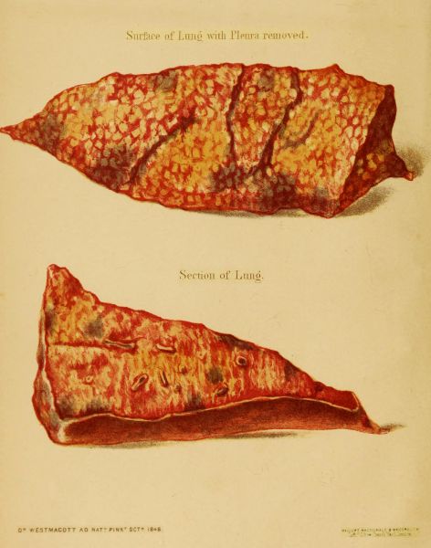 M. Cruveilhier assures us, that a single drop of mercury introduced into the cancellous structure of living bone, may subsequently be detected in the capillaries of the lung, where it becomes the centre of one or more patches of livid congestion. This experiment appears to afford a perfect illustration of the way in which diseased secretion may be conveyed into the circulation, when the natural processes of repair in bone are abortive. These processes are the same in bone as in the other structures of the body; viz., union by the first intention, and adhesive inflammation. In soft parts, as the fibrin, which forms the bond of union in the first of these, is absorbed, the divided veins collapse, and thus continue closed; but in bony structures, where the injured vessels are held open, as the fibrin which at first closed their extremities becomes removed, their channels may be left as much open to the diseased secretions of the part, as to the globule of mercury in M. Cruveilhier's experiment.