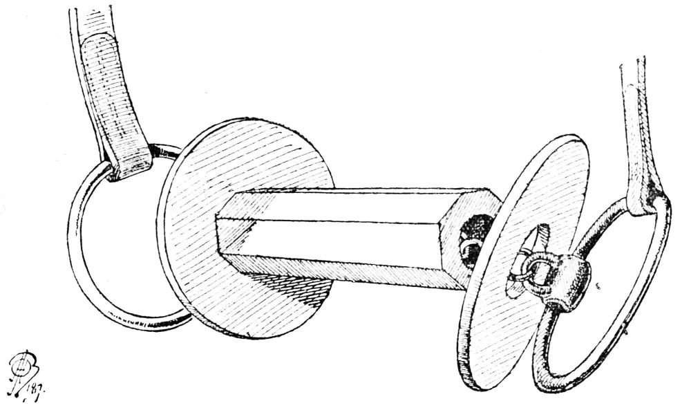 Giving a Horse a good mouth, the chief requirement in breaking.—The horse’s mouth ought to be the foundation of all good breaking; for an animal with a good mouth can hardly “do wrong”; unless, indeed, under very exceptional circumstances. As it is impracticable to be constantly repeating any “taming” method, such as Rareyfying, or tying a horse by his head and tail, we must disregard such practices as means for the maintenance of a permanent state of discipline—however useful they may be for enforcing authority in the first instance—and must trust to the influence of the rein, which is ever constant on the mouth, when riding or driving, to{31} keep the horse mindful of his duty when in action. The use of the leg should, of course, not be neglected in riding. The taming methods will, naturally, be required with animals that are difficult to handle when dismounted, or when out of the shafts.