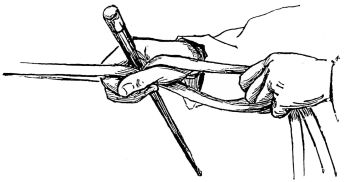 Punishment.—The chief practical reasons against the employment of punishment in the breaking of horses are: that it is very liable to fail in its object;{25} and that it is calculated to break the spirit of high-couraged animals, and to increase the sulkiness of stubborn ones. Of course I don’t mean to say that a vigorous “shaking up,” and a sharp cut or two with a stick (for preference), or whip, is not advisable for stopping the exhibition of “calfish” tricks by a young colt. Owing to the galling failures I have had—they were not many, for I stopped in time—I have made it a rule for my own guidance, never to touch a mare, so as to hurt her, when breaking.