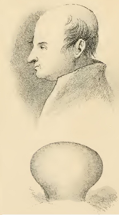 [119b] There is a remarkable correspondence between the kind of mind he exhibits, and the configuration of his head. It is very large and smooth, with self-esteem, love of approbation, large; firmness, full; combativeness, defective.