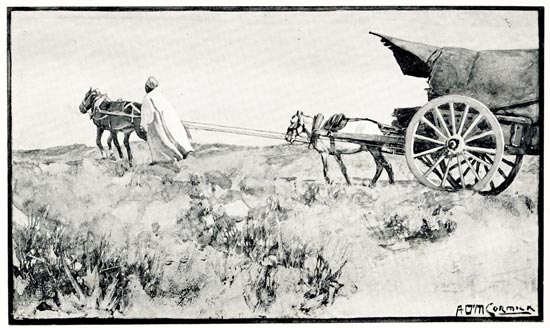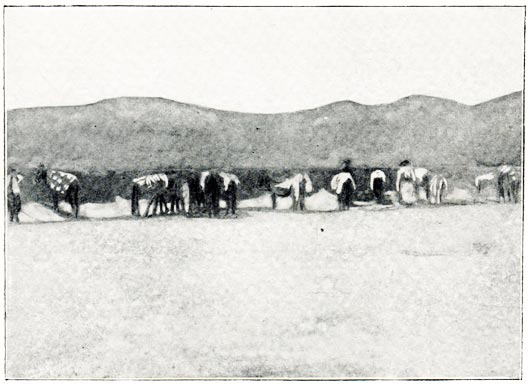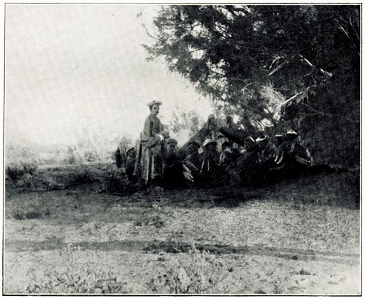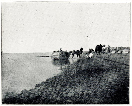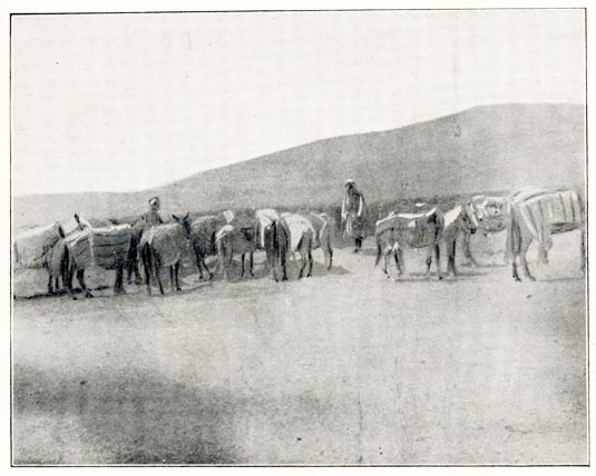 [19] Each camel man has a string of six animals, to the last of which a bell is attached. The owner has hold of the leading camel, and, as long as he hears the bell, he knows the rest are following all right; if it ceases he knows something is wrong.
