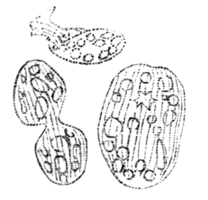 On examination the cess-pool was found to be connected directly with the well by a pipe, and when the cess-pool became full, its contents regurgitated into the well. The Board of Health examined the premises, condemned the well and ordered that both privy vault and cess-pool be cleaned out without delay. I understand that it is quite common in this city to connect the cess-pool with the well by a pipe so that the waste water may be readily conveyed away; but if people knew the danger to be feared from such an arrangement, greater care in the construction of drains would be exercised. Hundreds of cases might be related where in houses fitted with all that taste could desire, and gold procure, a siphoned trap, or in the absence of a trap, an imperfect joint, or an old brick drain, or riddled soil pipe, defects easily remedied if known to exist, have undermined the health of adults and slain the little ones. In the first sample a large quantity of animalculæ were revealed by the microscope. Fox states that “the existence of animal life in a [Pg 12] water affords good evidence in itself of the presence of a very sensible amount of organic matter, alias filth. These little creatures feed and flourish on what we call organic matter, and in perfectly pure water they cannot live. A perfectly pure water contains no suspended matter nor any animal or vegetable life. The ova of the round and the thread worms, the eggs and joints of the tapeworm and small leeches, which may give rise to grave disorders, should not be forgotten in making microscopic examinations of drinking waters.”