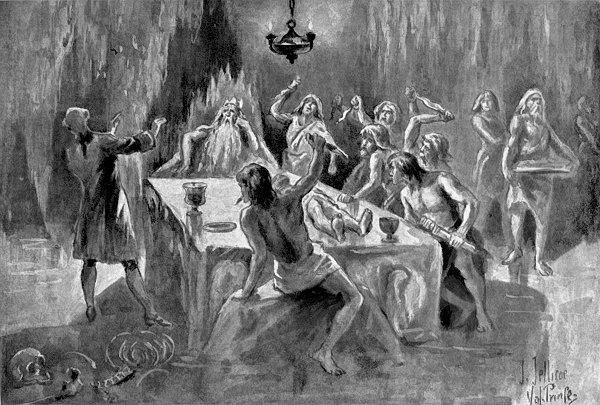 But how shall I describe my horror, consternation, and disgust on beholding the strange congregation there assembled? It was easy to see with half an eye that they were no beings of this world. They were seven, I think, in number; indeed, the chapel had hardly room for more, and to my dying day, never can I forget that horrible sight. One of them, who stood at the altar, and who seemed to be the priest, had evidently been decapitated. He stood upright, holding his head under his arm.[393]