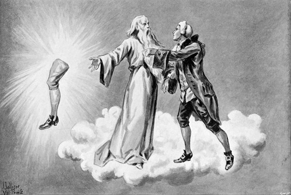 The reason she gave me was that they had all been massacred in their sin, and their spirits not being yet pure enough to enter the realms of eternal bliss, they were, like herself, doomed to go through their religious duties as on earth, until masses should be said for[394] their deliverance. This, she told me, was her object in leading me here—that I might see the misery of these wretched spirits, and pray for them. I promised I would do so, and mass being finished, she introduced me to the skinned gentleman, whom, she informed me, was her lover. He bowed, grinned horribly, and offered me his anatomical hand, after which I had a word with each of the spirits in turn, and then prepared to take my departure.