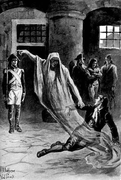 "Fly with you, father!" I mentally cried. To which the spectre answered, "I will envelop you in my essence, and being invisible myself to others, will make you likewise invisible. Thus, as the new prisoner enters, we will pass unseen by the turnkey through the open door, and so on, past the guard, till we find ourselves outside. Once past all danger, I will conduct you to the seashore, where a vessel awaits you to carry you back to England."