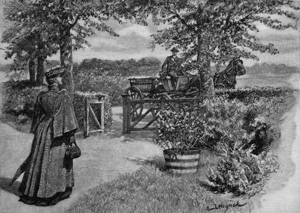 The dog-cart was a very smart dog-cart, and the mare was a high-stepping mare. She fretted under the sudden restraint, amid an appetizing jingle and smell and glitter of harness. There was not so much promiscuous dust but that the speaker could instantaneously perceive the two heads over the low brown wall.