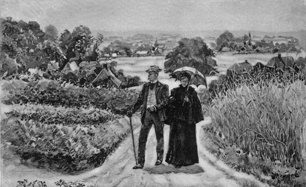 The prim vegetable garden, with its ranks of gay salads and pompous cabbages, lay serenely roasting, as vegetable gardens delight to do, in unabated verdure. About Ursula’s corner the lattice-work of creepers put forth some faint attempt at a stunted shadow. Dominé Rovers came down the walk, his coat-flaps brushing the currant-bushes.