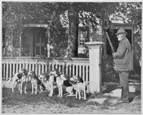 A yelping of dogs sounded afar off in the rear, with straggling cries on both sides of him and in front. Off started Waddles, quickly disappearing[388] in the bushes, and Tommy followed as fast as his legs could carry him, for he heard a voice and the trampling of hoofs, and if the run was over, it must be luncheon time.