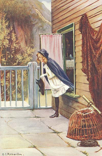 “I meant to have put it on,” she explained, “before[149] I reached your gate; I thought it was more—more right to have on a hat when one paid a call. I only put on my cloak because I was afraid my dress would show as I came up the cliff, and I was afraid some one would see me and stop me.”