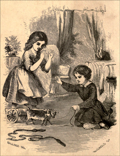 "O, I do thank you!" exclaimed the delighted boy; and he kissed his cousin more than six times, and then began to roll the cart on the floor.