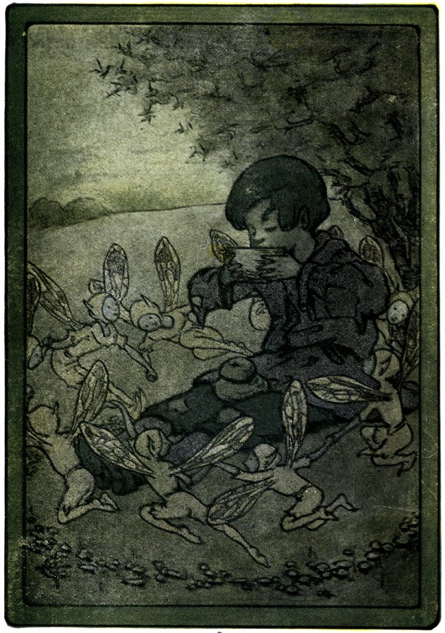 “Yours, of course,” said the little man. “I shouldn’t need any. If it hadn’t been for those green ribbons on your christening robe, my young friend, you wouldn’t be sitting here now. It is only the children that have worn green ribbons at their christening who can see the fairies at all.”