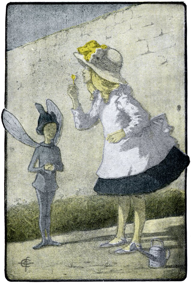 “I don’t know what else you’re to call me,” said the little man, “it strikes me as a very good name of its kind. Perhaps I ought to tell you that I am the fairies’ land- and house-agent for this garden; I chose it for various 26reasons, partly so as to be near you, for it is the business of the fairies to look after lonely children.”