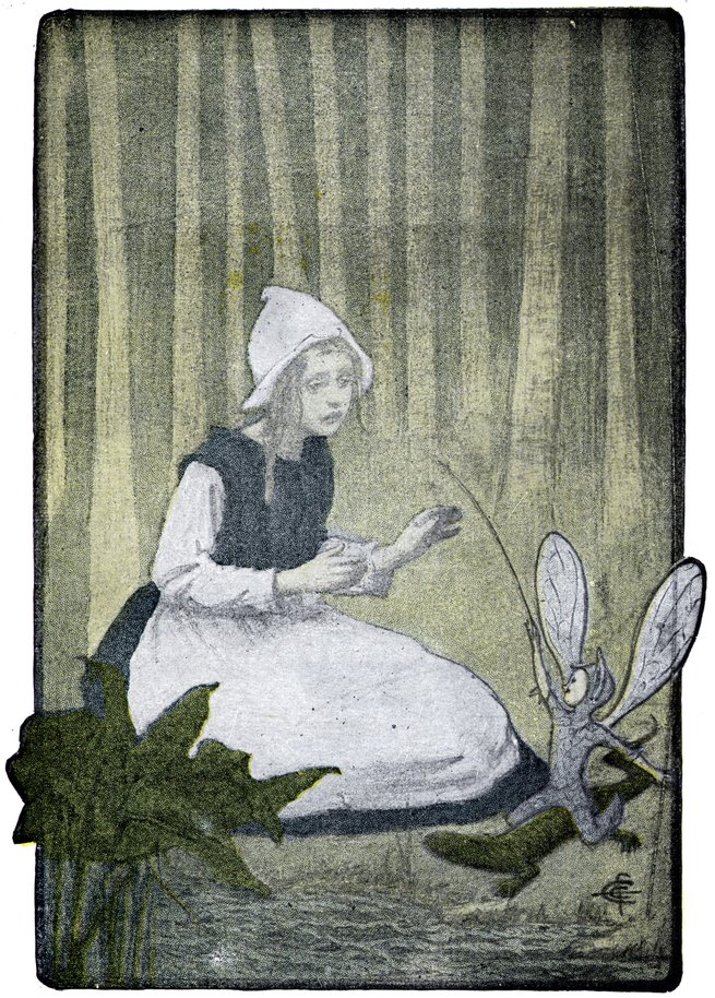 So the brook took the message, and flowed on through the forest till it became choked with sedges. “O dragonfly,” it said in a stifled voice to a dragonfly that hovered among the flags, “bear you the prince’s message to the weaver.”