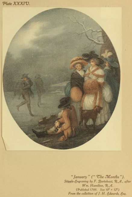 | ” | XXXIV. | “January” (“The Months”). Stipple-Engraving by F. Bartolozzi, R.A., after Wm. Hamilton, R.A. |