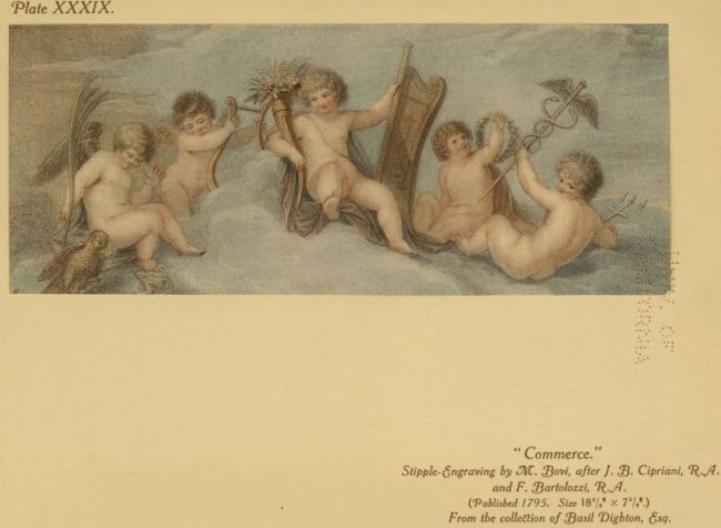 | ” | XXXIX. | “Commerce.” Stipple-Engraving by M. Bovi, after J. B. Cipriani, R.A., and F. Bartolozzi, R.A. |