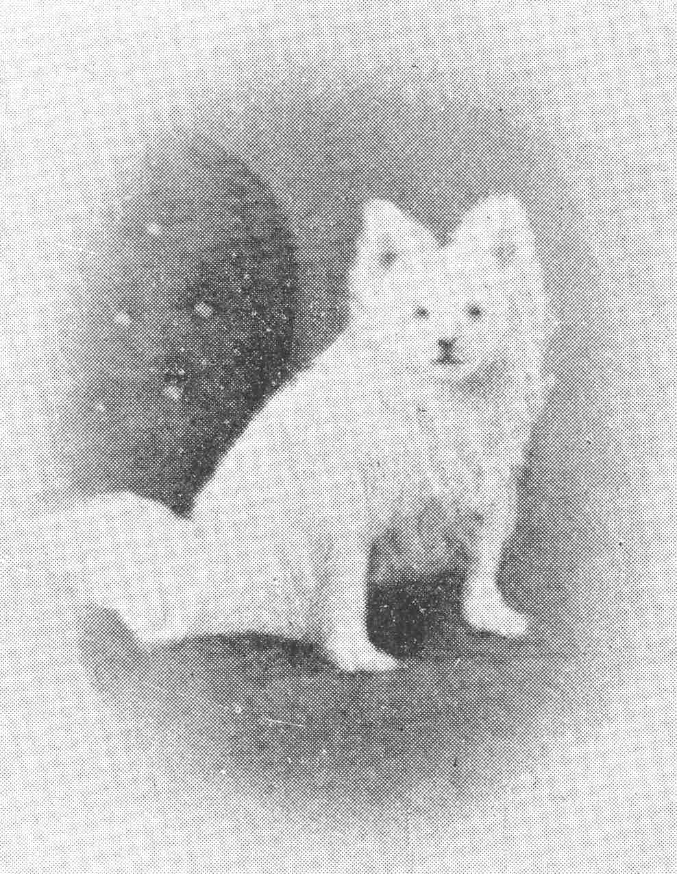 And dozes in her mistress’ arms—A sleepy Spitz.