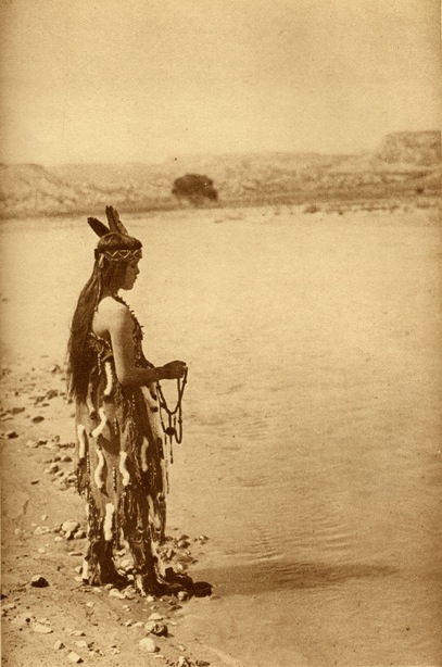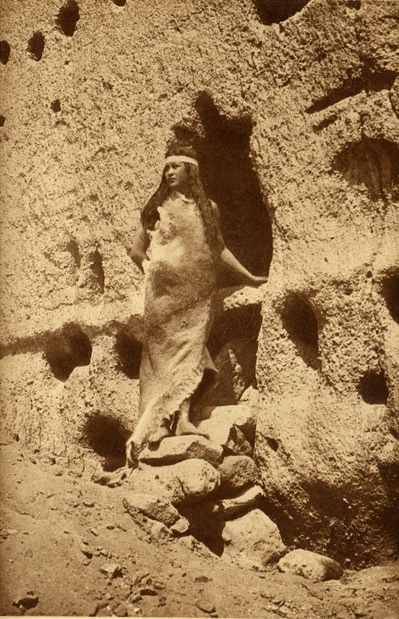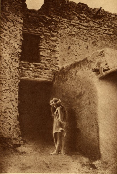 No one had seen her come, but her trail was from the south. She wore the dress of a pueblo girl, but she was not of their people. Her hair was not cut, yet on her forehead she carried the mark of a soon-to-be maternity––the sacred sign of the piñon gum seen by Ho-tiwa when he went as a boy for the seed corn to the distant Te-hua people by the river of the east.