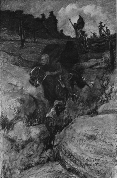 “Sure,” he agreed, yanking at the cinch, “and I’ll come a lopin’ with the bonnie blue flag, to give aid and succor to the enemy.”