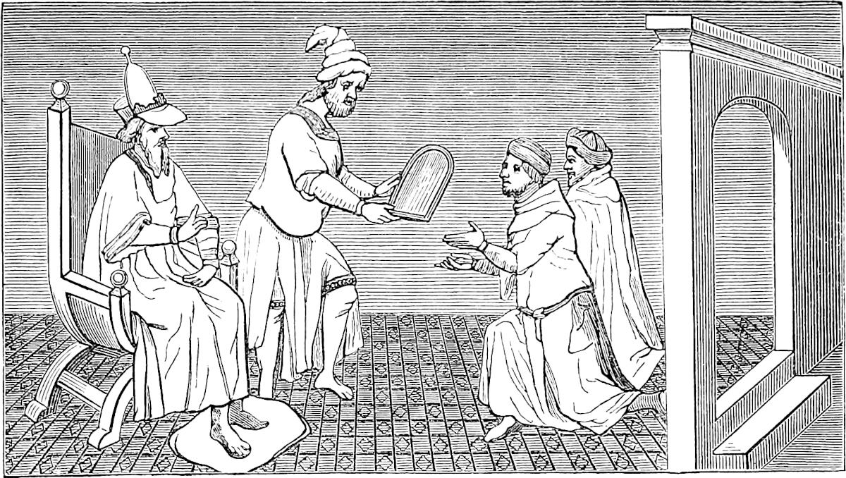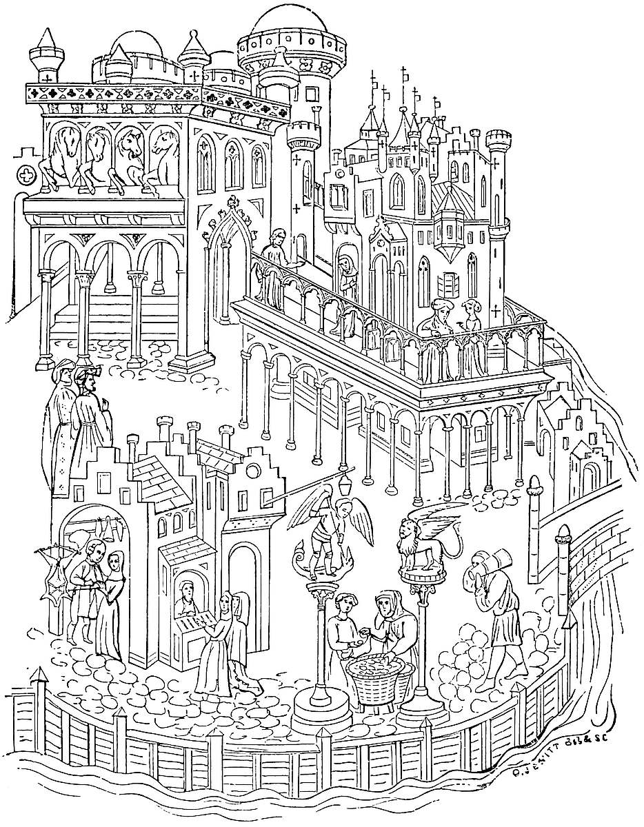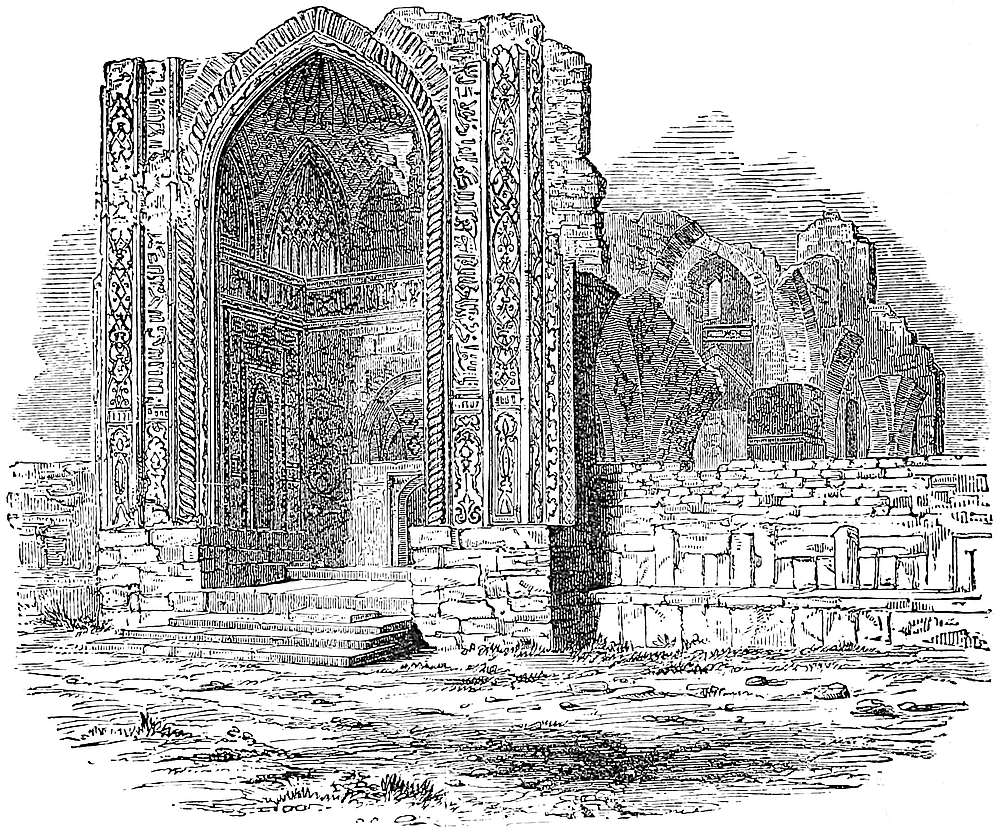 And as the writer lingered over this conclusion, his thoughts wandered back in reverie to those many venerable libraries in which he had formerly made search for mediæval copies of the Traveller’s story; and it seemed to him as if he sate in a recess of one of these with a manuscript before him which had never till then been examined with any care, and which he found with delight to contain passages that appear in no version of the Book hitherto known. It was written in clear Gothic text, and in the Old French tongue of the early 14th century. Was it possible that he had lighted on the xvilong-lost original of Ramusio’s Version? No; it proved to be different. Instead of the tedious story of the northern wars, which occupies much of our Fourth Book, there were passages occurring in the later history of Ser Marco, some years after his release from the Genoese captivity. They appeared to contain strange anachronisms certainly; but we have often had occasion to remark on puzzles in the chronology of Marco’s story![7] And in some respects they tended to justify our intimated suspicion that he was a man of deeper feelings and wider sympathies than the book of Rusticiano had allowed to appear.[8] Perhaps this time the Traveller had found an amanuensis whose faculties had not been stiffened by fifteen years of Malapaga?[9] One of the most important passages ran thus:—