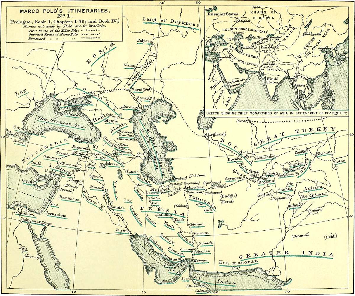 In concluding these “forewords” I am probably taking leave of Marco Polo,[6] the companion of many pleasant and some laborious hours, whilst I have been contemplating with him (“vôlti a levante”) that Orient in which I also had spent years not a few.