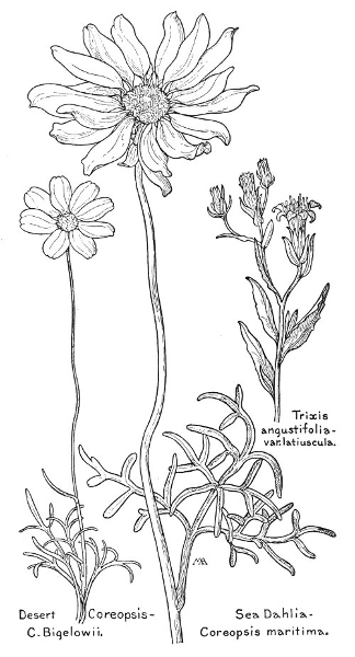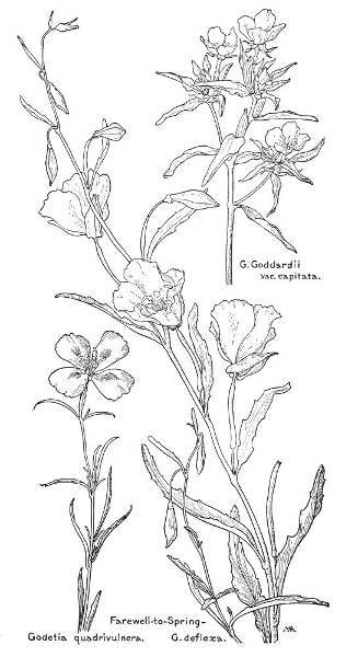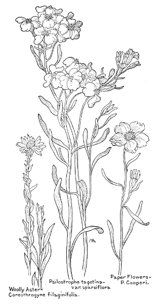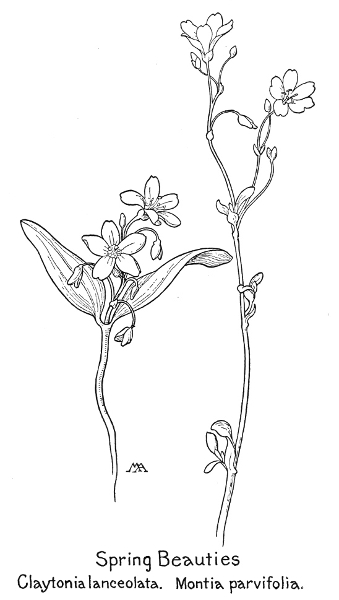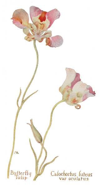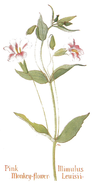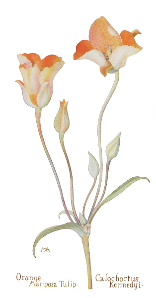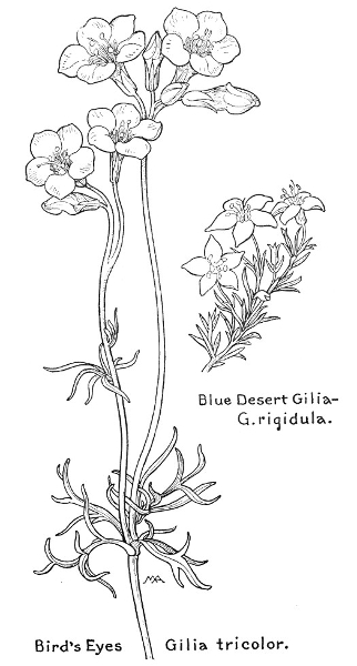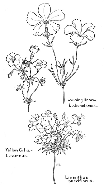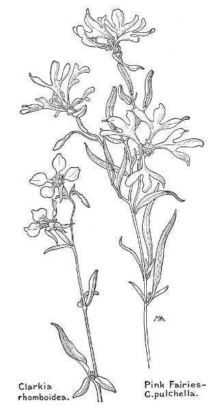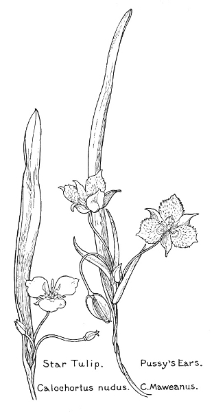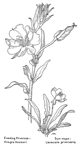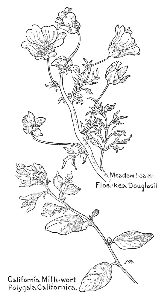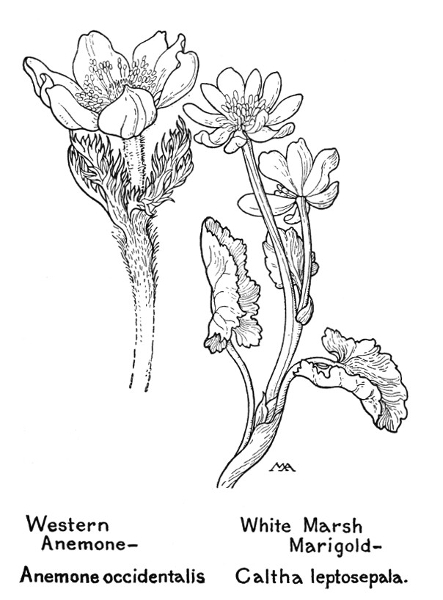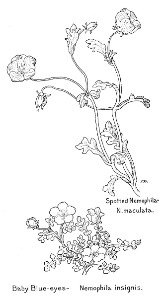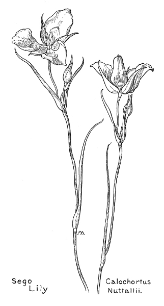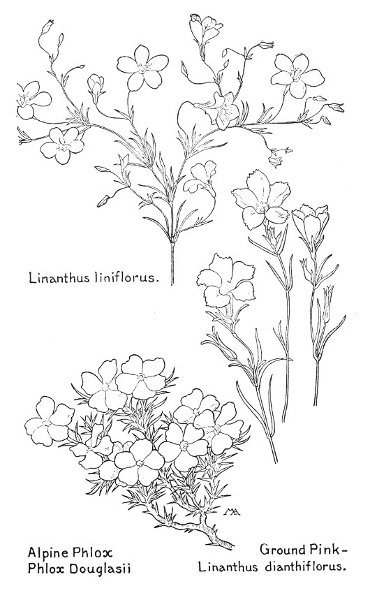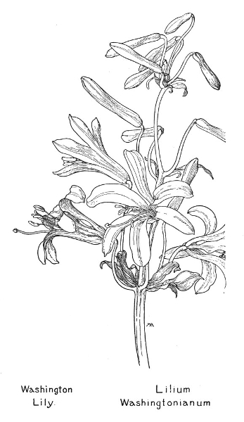 In this little book a very large number of the commoner wild flowers growing in the United States, west of the Rocky Mountains, are pictured and described. It is the first attempt to supply a popular field book for the whole West. The field is vast, including within its limits all sorts of climate and soil, producing thousands of flowers, infinite in variety and wonderful in beauty, their environment often as different as that of Heine's Pine and Palm. In such strange homes as the Grand Canyon and the Petrified Forest of Arizona, or the deserts of Utah and southern California, we find the oddest desert plants, forced to curious expedients in order to sustain life amidst almost perpetual heat and drought, but often displaying blossoms of such brilliance and delicacy that they might well be envied by their more fortunate sisters, flourishing beside shady waterfalls, in a "happy valley" like Yosemite, or a splendid mountain garden, such as spreads in many-colored parterres of bloom around the feet of Mt. Rainier. On the wind-swept plains hundreds of flowers are to be found; many kinds of hardy plants brighten the salty margins of the sea cliffs, or bloom at the edge of the snow on rocky mountain peaks, while quantities of humble, everyday flowers border our country roadsides or tint the hills and meadows with lavish color.