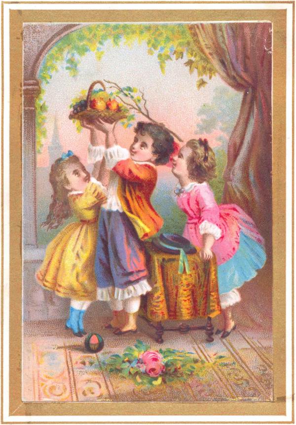 The children were having a frolic in the play-room while this talk had been going on. Johnnie and Mabel [pg 6] had been arranging a little basket of fruit for their mother, oranges, apples and grapes, and now they were disputing as to which should present it to her.