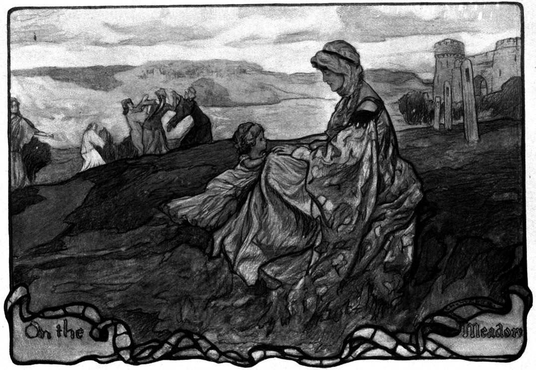 The gulls were sinking slowly toward their nests. The drawbridge over the moat was just lifting for the night. A lapwing or two floated round the high turrets of the Castle; and from the doorway there, Alixe was coming forth, bearing Lenore’s baby in her arms. The stillness grew more intense, and over the edge of the eastern trees slipped the round, pink harvest moon. Then, one by one, a few great stars came sparkling out into the sky.