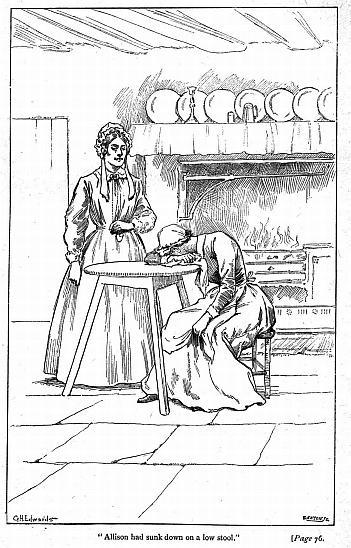In the gloaming they went down by the burn side, and past the stepping-stones, and round the hill to the cottage of Janet Mair. It was a dark little place. The tiny peat fire on the hearth cast only a faint light, and it was some moments before they caught a glimpse of the wee bowed wifie, who had befriended Allison in her time of need.
