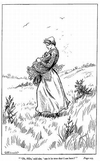 “Now,” said she, with a glance at those who were waiting. And with her face bowed down, but with a firm step, she “carried her father’s head” out of the house which was “to know him no more.” In breathless silence the friends and neighbours fell into their places, and she stood white and tearless gazing after them till the last of the long train had disappeared around the hill. Then she went slowly back toward the house. At the door she stopped and turned as if she were going away again. But she did not. When her aunt—her mother’s sister—put her hand on her shoulder, saying softly, “Allie, my woman,” she paused and put her arms round the old woman’s neck and burst into bitter weeping. But only for a little while. Her aunt would fain have spoken to her words which she knew must be said soon; but when she tried to do so, Allie held up her hand in entreaty.