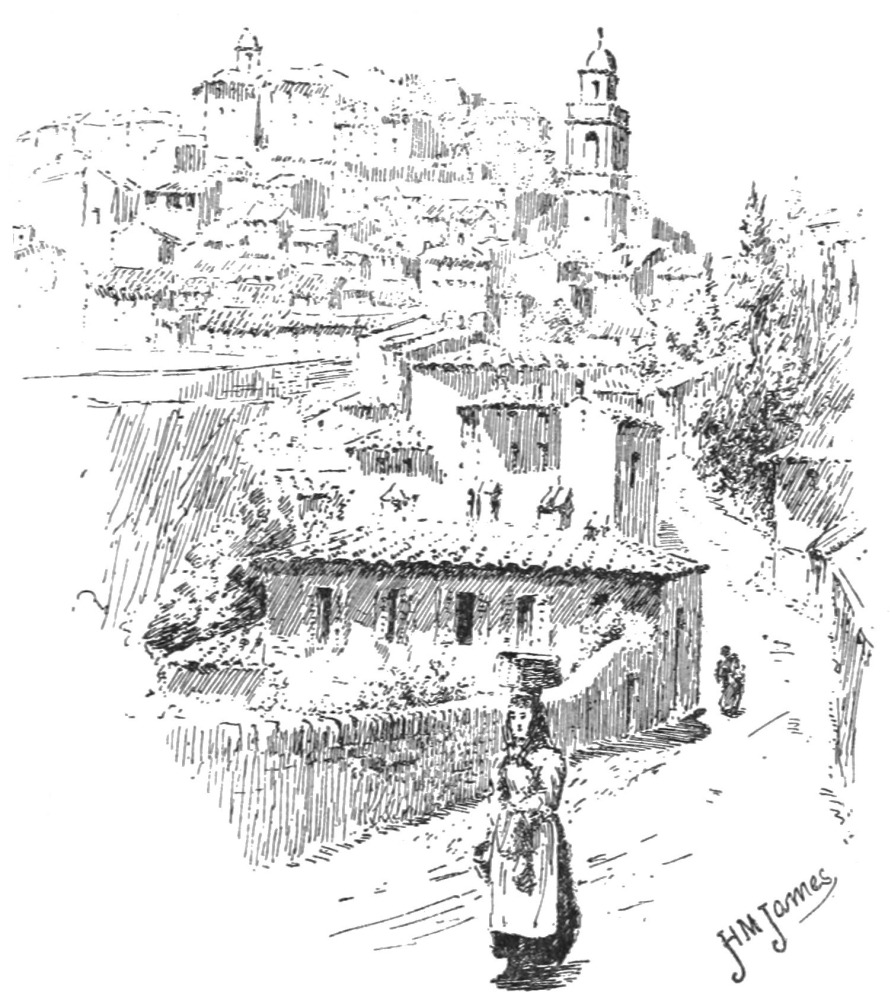 [86] The town, like every other small Italian town, has had its complicated and tempestuous history. Its walls, many of which are very early, have suffered siege (see pp. 19, 20); and its hills are honeycombed in places with Etruscan tombs.