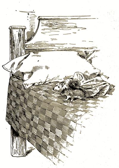 Now, what do you think he did? He ate his nut as fast as he could, and then he tumbled out of his chair and went off to bed! Yes, he scrambled down into his own corner, and crept[225] into his bed—without a good-bye look at his pretty visitors.
