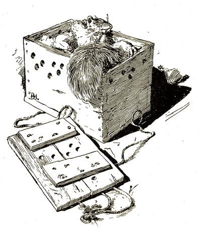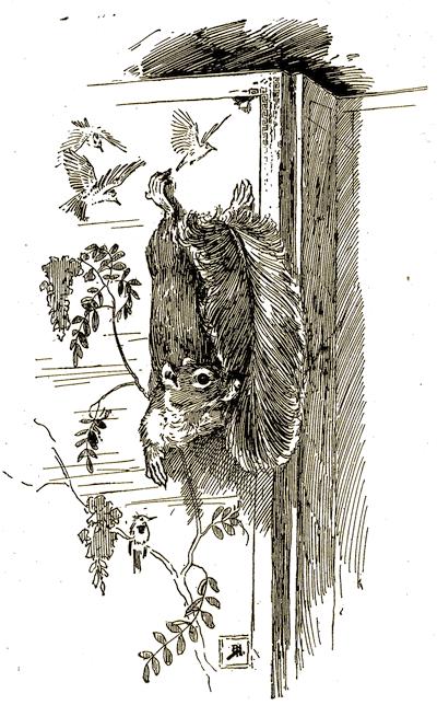 Sit in her lap? Not a bit of it! Nor would he take any nuts from her, nor have anything to do with her. As soon as he got out of the cage, off he scampered, and she could not catch him. So she took a book and sat[214] still, hoping he would return to his cage, in which she had laid some nuts.