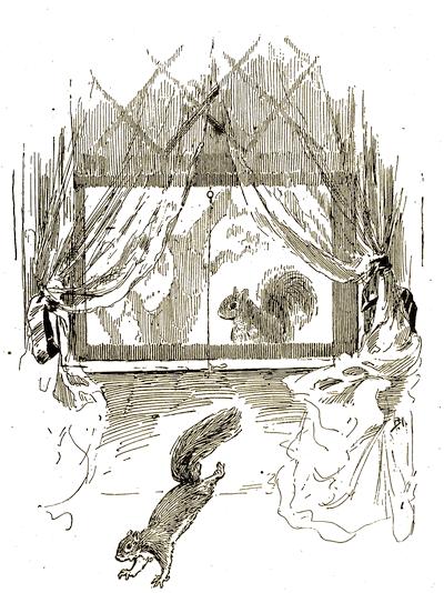 Little Mitchell’s bushy tail jerked nervously for a minute, and his bright eyes looked wildly from one strange face to another; then he gave a leap and landed at his lady’s feet, and in another second was up on her shoulder.